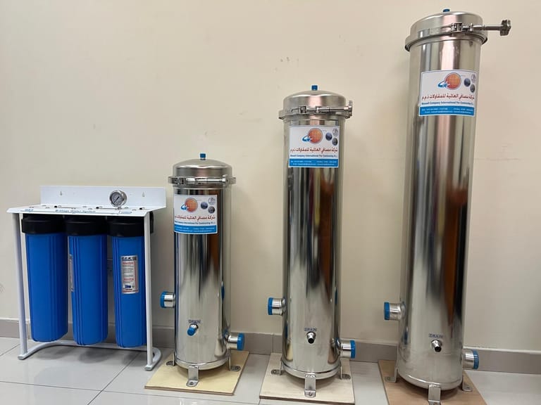 • أنظمة متقدمة (كربون مضغوط + منشطات) — حسب تحليل المياه (اكثر دقة).